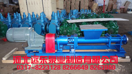 單螺桿泵是一種內(nèi)嚙合偏心回轉(zhuǎn)的容積泵,泵的主要構(gòu)件:一根單頭螺旋的轉(zhuǎn)子和一個通常用彈性材料制造的具有雙關(guān)螺旋的定子,當轉(zhuǎn)子在定于型腔內(nèi)繞定子的軸線作行星回轉(zhuǎn)時,轉(zhuǎn)定子之間形成的密閉腕就沿轉(zhuǎn)子螺線產(chǎn)生位移;因此就將介質(zhì)連續(xù)地,均速地、而且容積恒定地從吸入口送到壓出端,基于這件特性,單螺桿泵特別適合于下列工況的工作。  輸送高粘度介質(zhì):根據(jù)單螺桿泵的大小不同可以輸送粘度從37000-200000厘泊的介質(zhì)。 含有顆;蚶w維的介質(zhì):顆粒直徑可以這30mm(不超過轉(zhuǎn)子偏心距)。纖維長可以350mm(相當0.4位 轉(zhuǎn)子的螺距)。其含量一般可達介質(zhì)窖的40%,若介質(zhì)中的固體物為細微之粉沫狀時,最高含量可達60%或更高也能輸送。 要求輸送壓力穩(wěn)定,介質(zhì)固有結(jié)構(gòu)不愛破壞時,選用單螺桿泵輸送最為理想。 單螺桿泵的選用