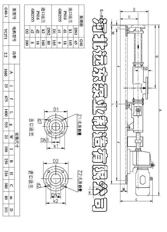 G40-1V單螺桿泵配YCJ71-2.2KW減速機安裝尺寸圖