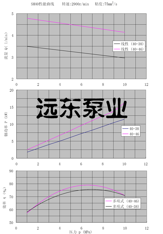 SM40三螺桿泵轉(zhuǎn)速2900r/min粘度:75cst性能曲線圖
